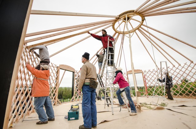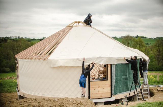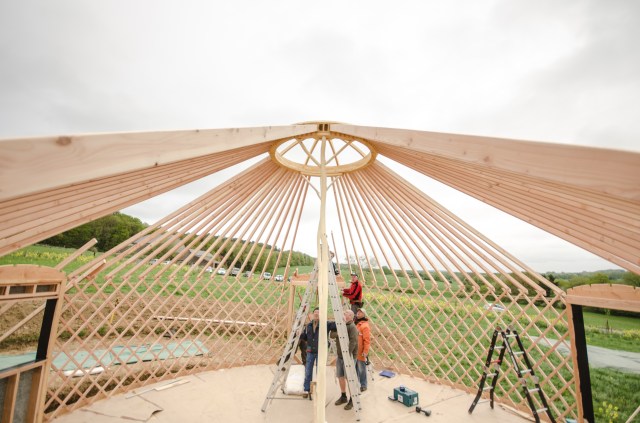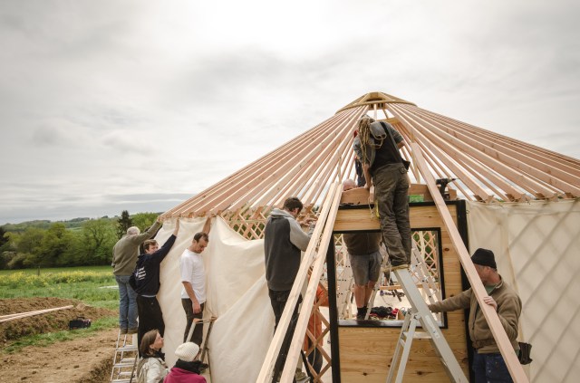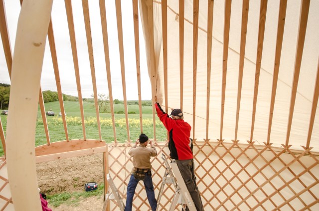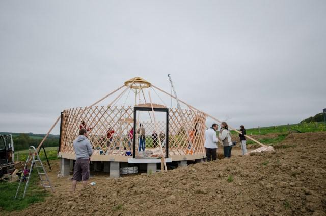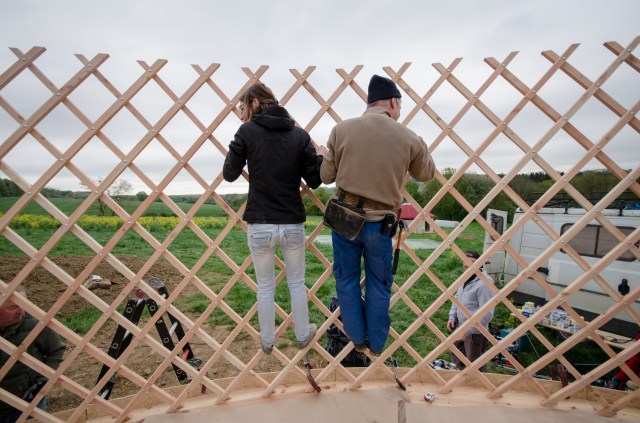 Galerie Le 7 janvier 20179 septembre 2019 par HSPdans GalerieLaisser un commentaire Yourte 9 m : Pose des perches Yourte 9 m : Pose des perches Yourte 9 m : Pose de la toile intérieure Pose de la toile intérieure (coton) Yourte 9 m : Pose des perches Pose de la toile intérieure (coton) Toono (couronne) bois massif (creusé dans la masse) Bardage d’un encadrement de fenêtre Plancher : incrustations métalliques Isolant toit et murs : assemblage des bandes